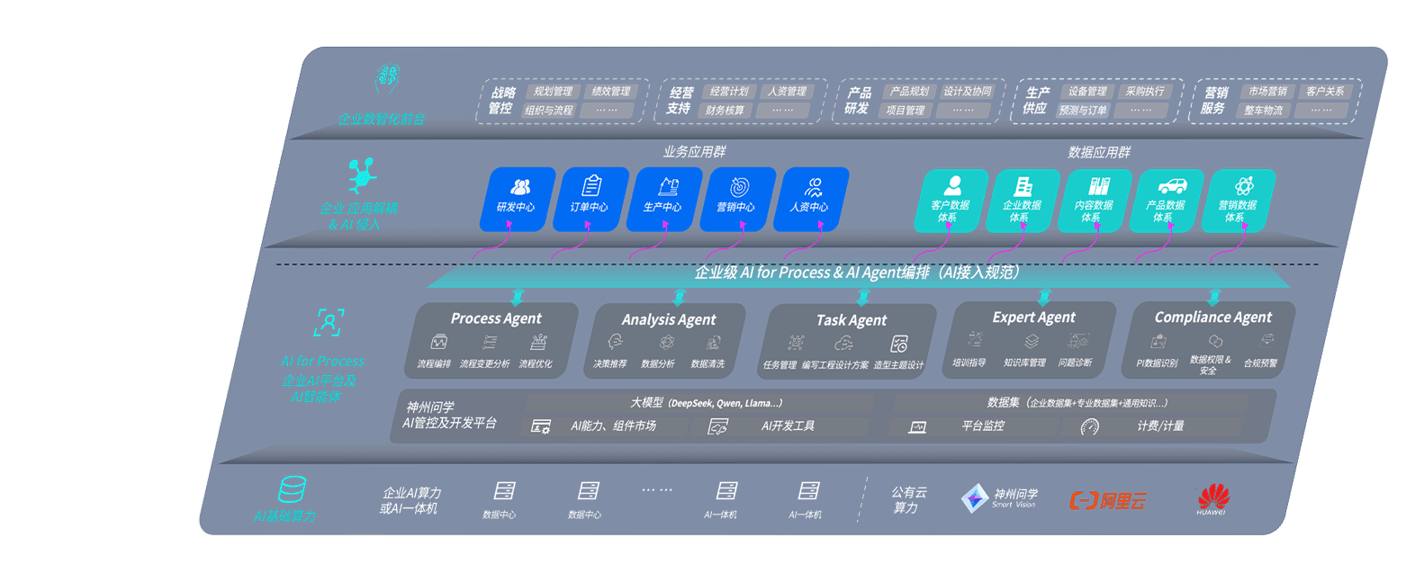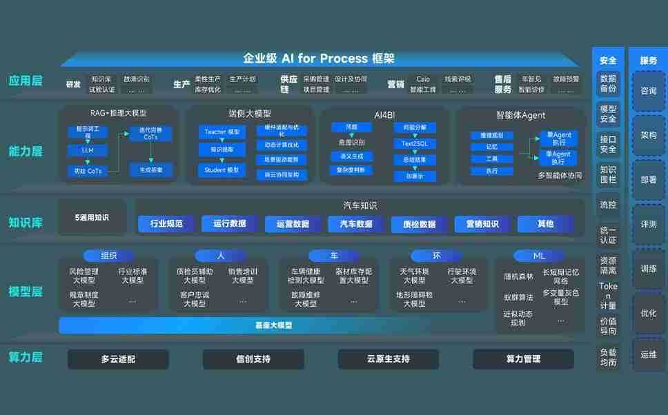90.cc问学智车解决方案是一套基于AI技术的汽车行业智能化系统,,,覆盖从底层算力到顶层AI应用的全栈方案。。。方案由算力层、、、、模型层和应用层组成:算力层,,,,方案支持多种一体机配置,,具备云端灵活部署、、、多云适配以及动态优化计算资源的能力;模型层,,90.cc问学平台版提供了企业级AI应用一站式构建与管理平台,,,支持基于后训练强化技术的汽车企业专属模型的训练、、评测和运营;应用层,,,90.cc问学DeepSeek版提供包括超级员工、、智能招采、、、智能营销、、、、智能客服、、AI for BI等一系列解决方案,,,可助力汽车行业实现数字化转型,,让管理更智能、、、响应更敏捷。。。。