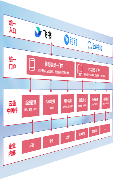 对协作平台提供支持服务,,支持企业应用与协作平台对接,,,,包含组织同步、、、消息集成、、待办集成等。。。支持目前主流的协作平台:钉钉、、、企微和飞书。。